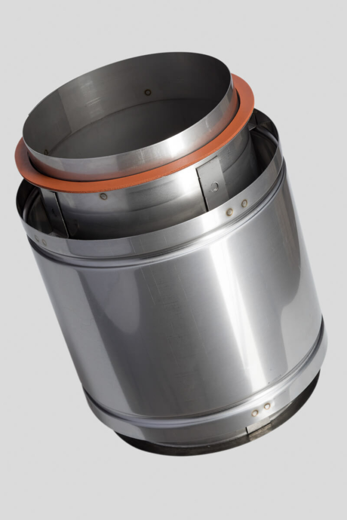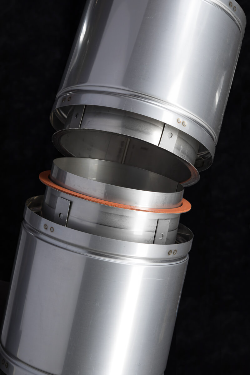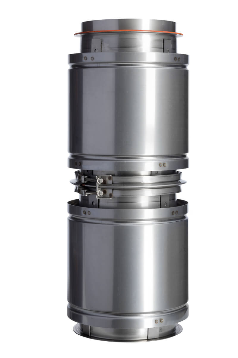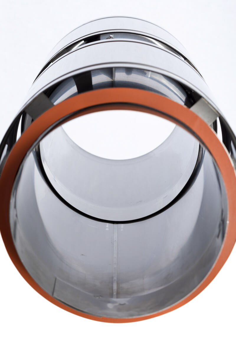 Our double-wall product features an AL 29-4C® or 316L inner liner, providing exceptional corrosive resistance and meeting all appliance manufacturers’ warranty requirements. A 1″ air gap between the inner and outer shell provides low clearance to combustibles and insulation properties to improve the natural draft. Upon request, 1″ of insulation can be added to the air gap.